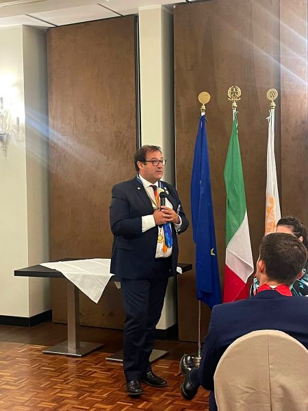 Il governatore ha richiamato la grande tradizione del Rotary International, che ogni anno adotta diversi simboli in abbinamento al tema prescelto dal presidente di turno. Per l’anno 2023-24 il presidente internazionale Gordon McInally ha coniato il motto: “Creiamo speranza nel mondo”, abbinandolo a un logo che simboleggia una conchiglia come segno di inclusione e protezione e ai colori della cravatta come segno di distinzione nel progetto comune rivolto alla pace nel mondo.